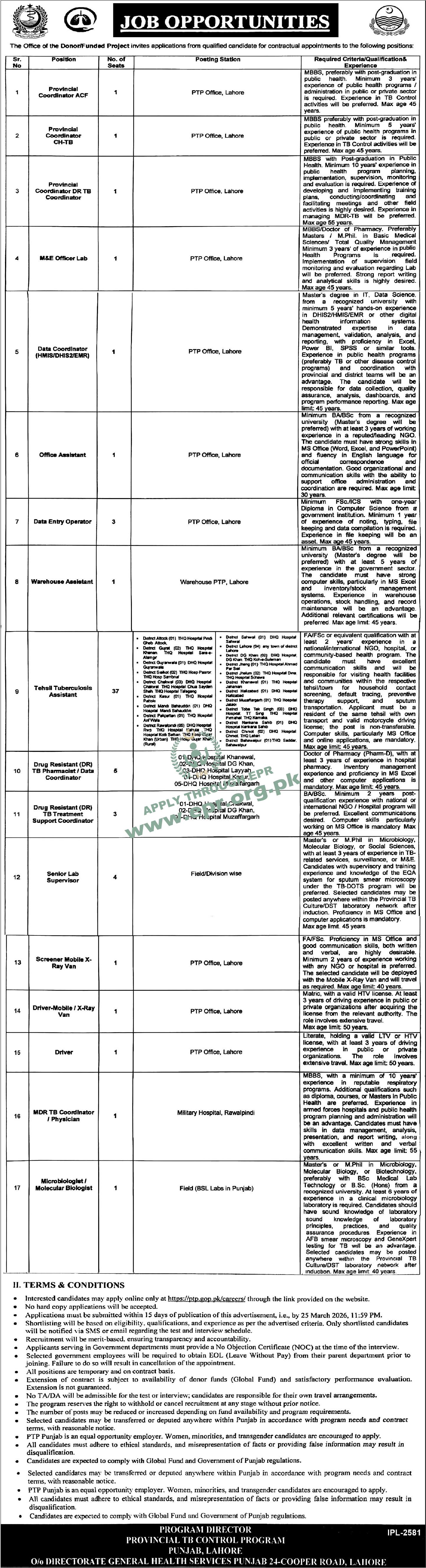 Govt. Dept : Provincial TB Control Program, Punjab