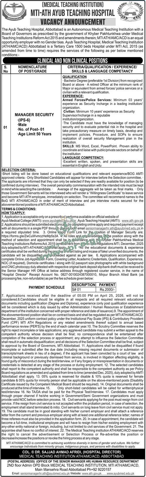 Govt. Dept : MTI-AYUB Teaching Hospital