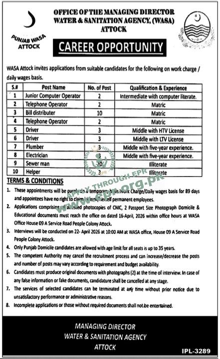 Govt. Dept : Water and Sanitation Agency, Attock