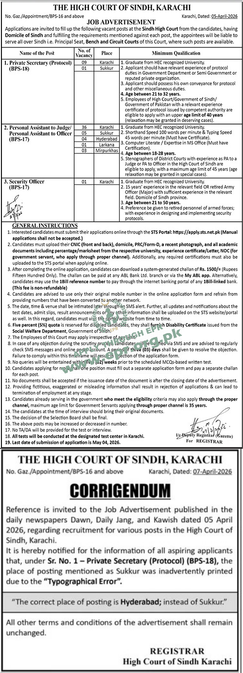 Govt. Dept : THE HIGH COURT OF SINDH, KARACHI