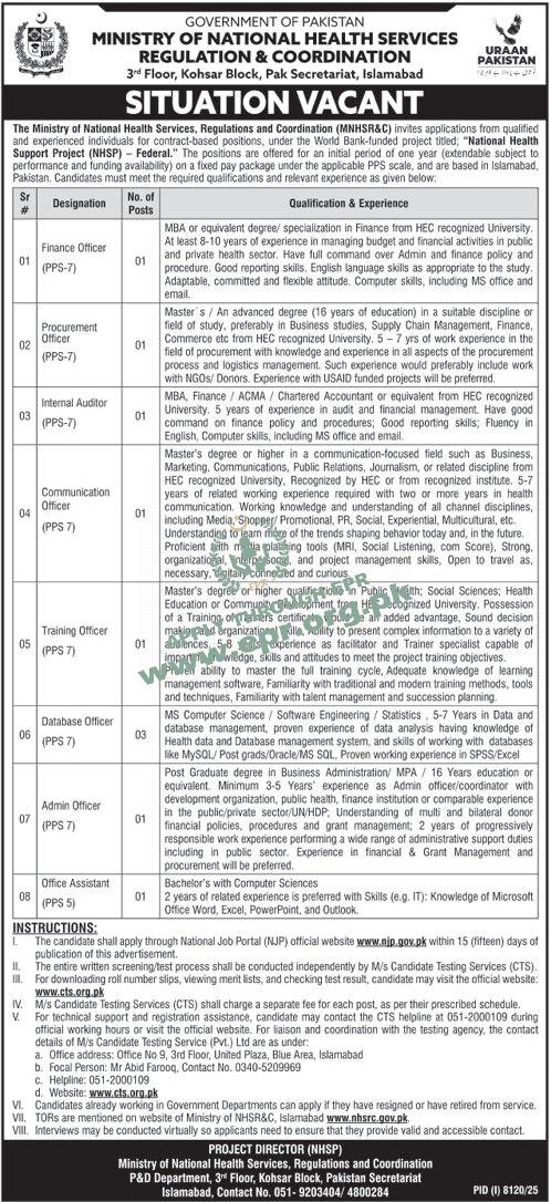 Govt. Dept : Ministry of National Health Services Regulations & Coordination