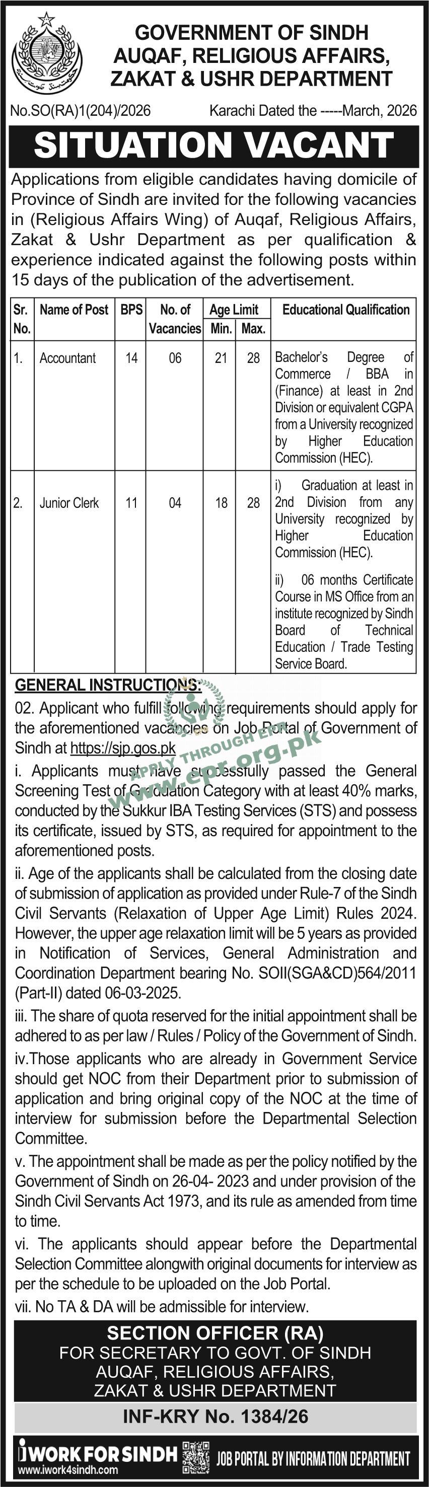 Bachelor’s Degree of Commerce / BBA in (Finance) at least in 2nd Division or equivalent CGPA from a University recognized by Higher Education Commission (HEC).