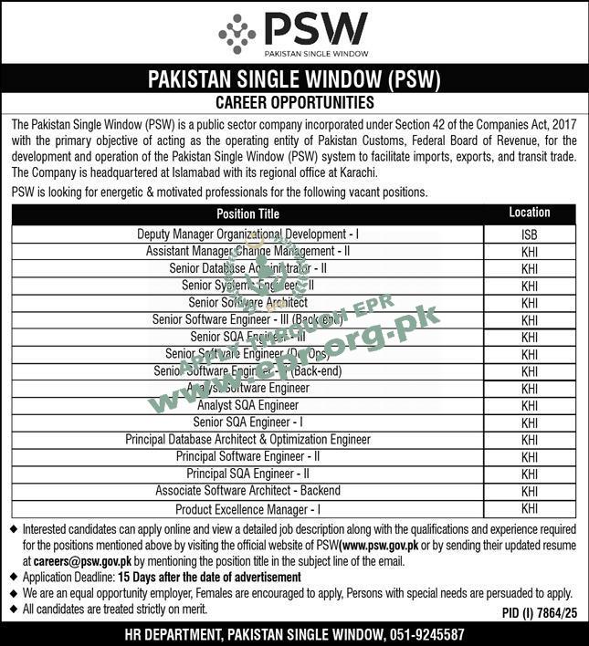 Govt. Dept : PAKISTAN SINGLE WINDOW (PSW)