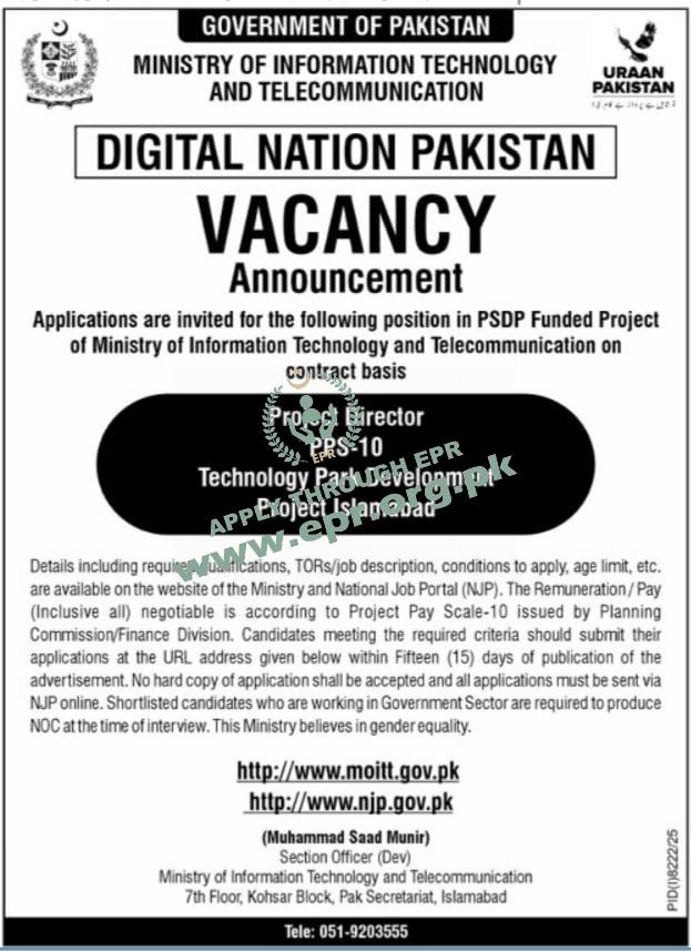 Must have a Bachelor’s Degree in Civil Engineering and a relevant Master’s degree from universities/institutes recognized by HEC. Certification in project management shall be preferred.