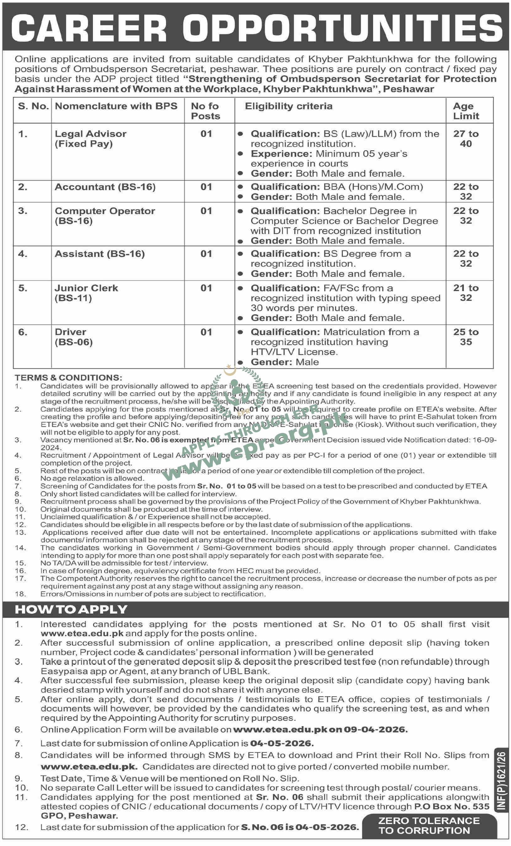 Govt. Dept : Ombudsperson Secretariat Peshawar