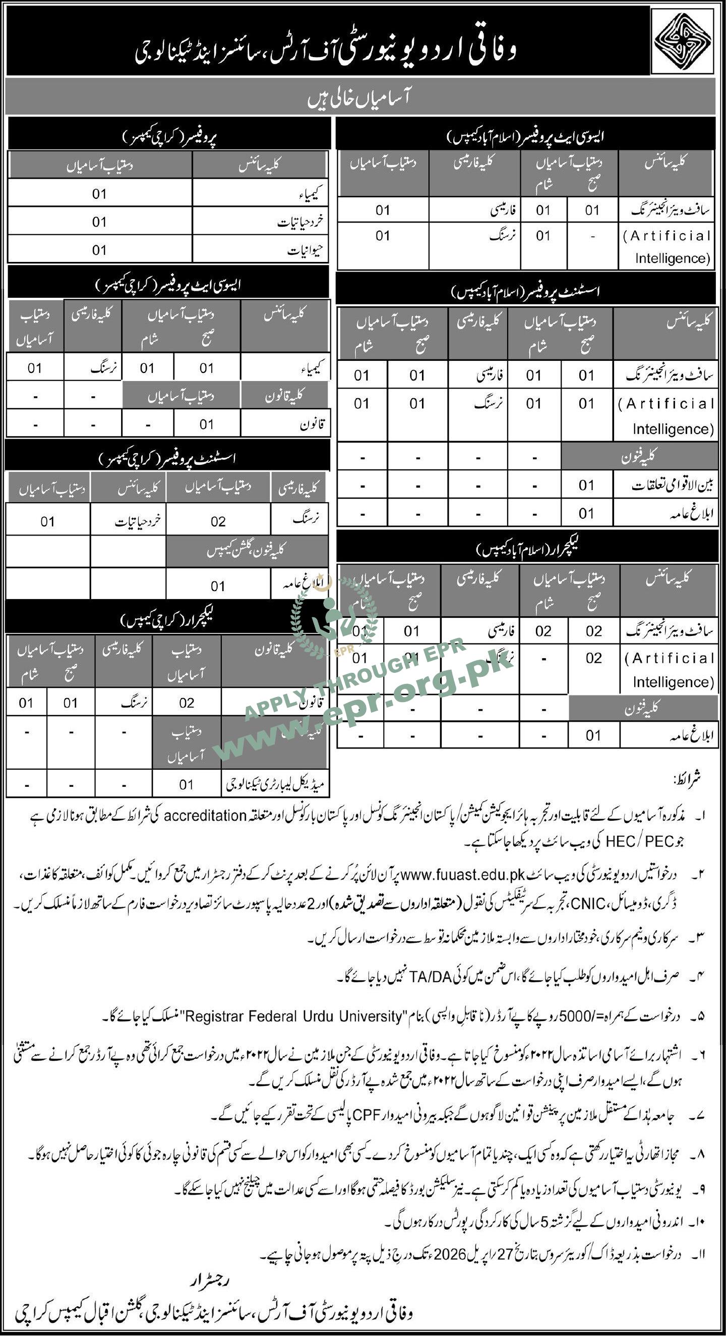 Govt. Dept : Federal Urdu University of Arts, Science & Technology (FUUAST)
